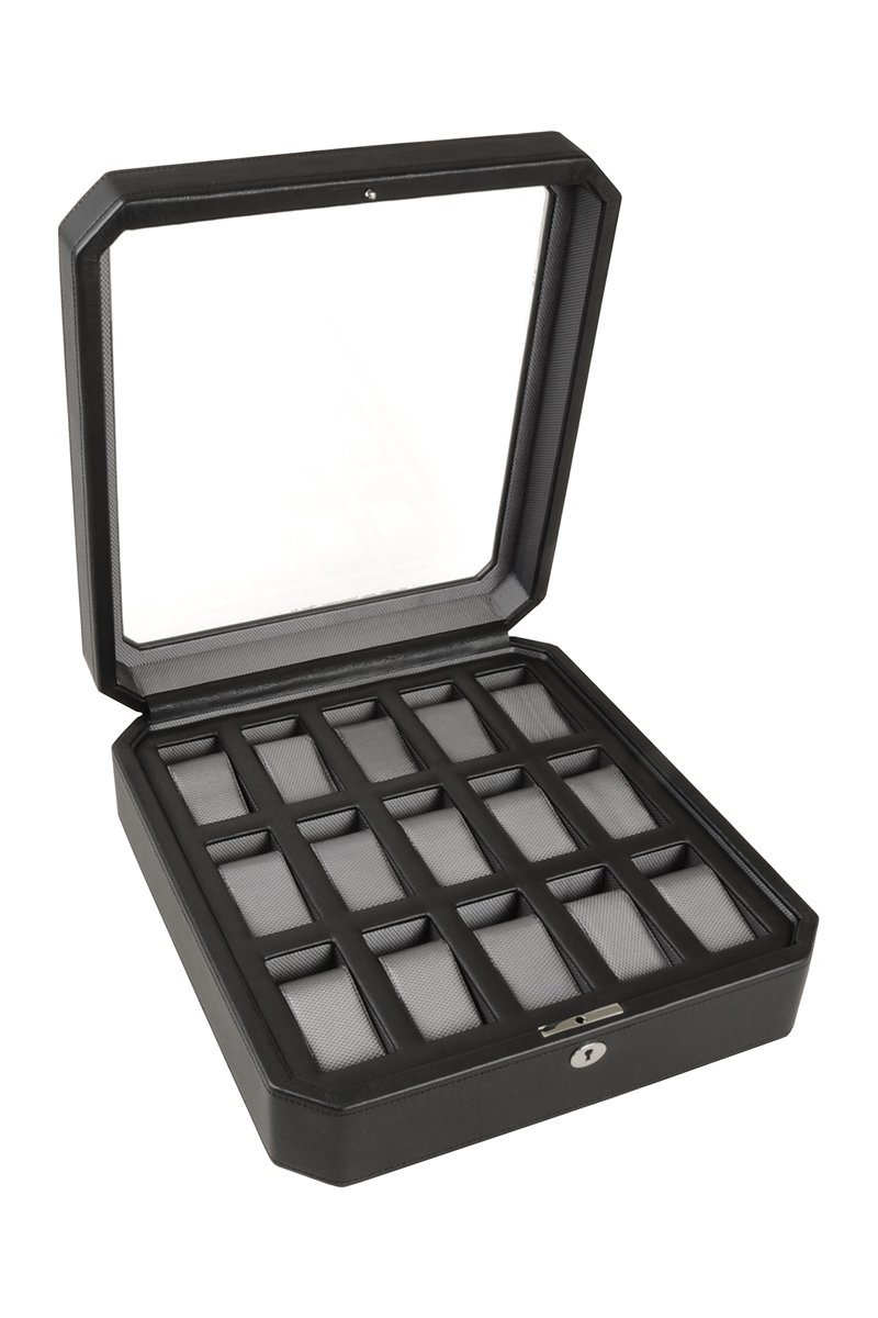Cofanetto per 15 orologi in pelle Windsor - Nero
