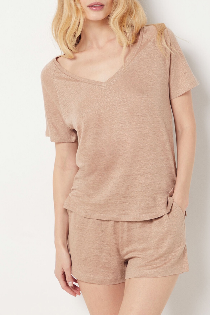 Shorts pigiama in lino - Marrone melange - Etam