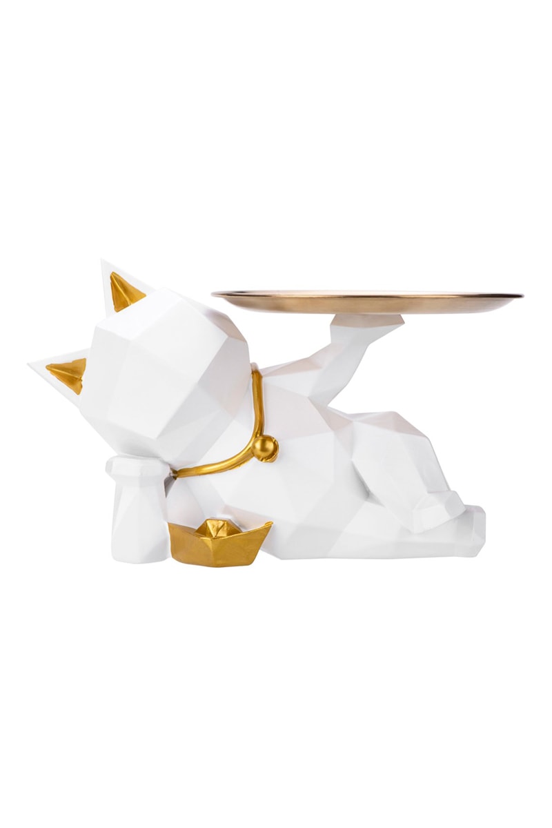 Il suo design geometrico 3D stile Origami si adatta a tutti i tipi di ambienti, rendendola unica e senza tempo. In posa rilassata, il Gatto pascià ti accoglie con un vassoio in mano, nella speranza di essere servito con oggetti di ogni tipo. Progettata per contenere caramelle, chiavi o bijoux, questa statuetta diventerà il tuo più grande alleato quotidiano per tutti quei piccoli oggetti che non sappiamo mai dove mettere.