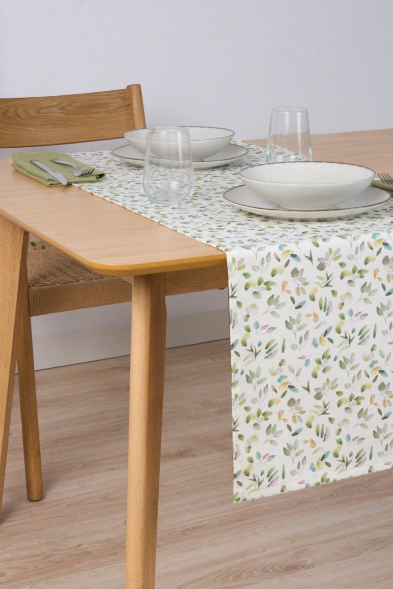 Runner in cotone bio Tariro - Bianco e verde - 150 x 50 cm