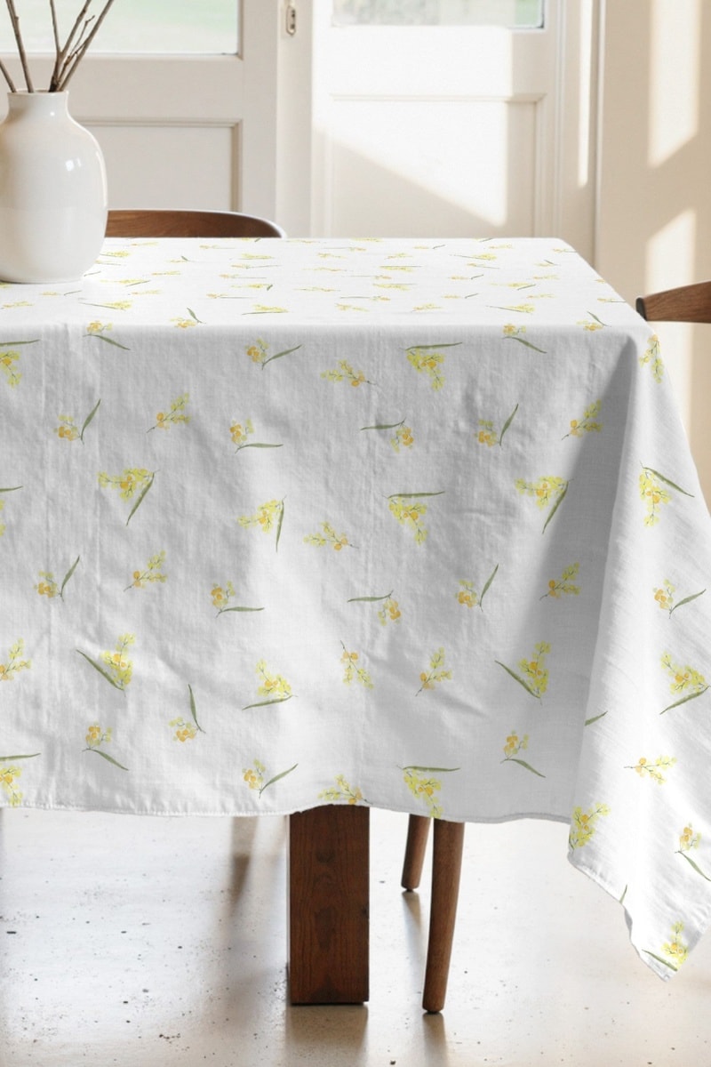 Tovaglia rettangolare antimacchia - Giallo e bianco
