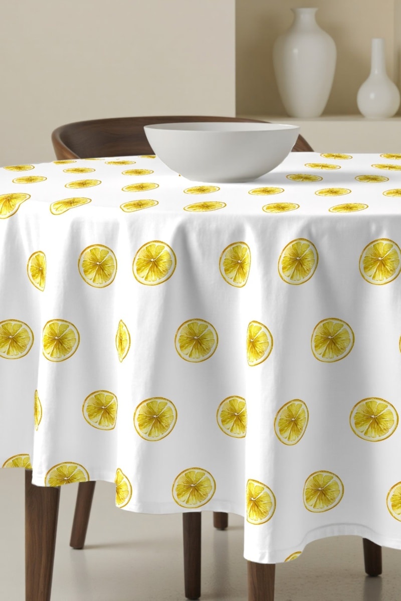Tovaglia rotonda antimacchia - Bianco e giallo