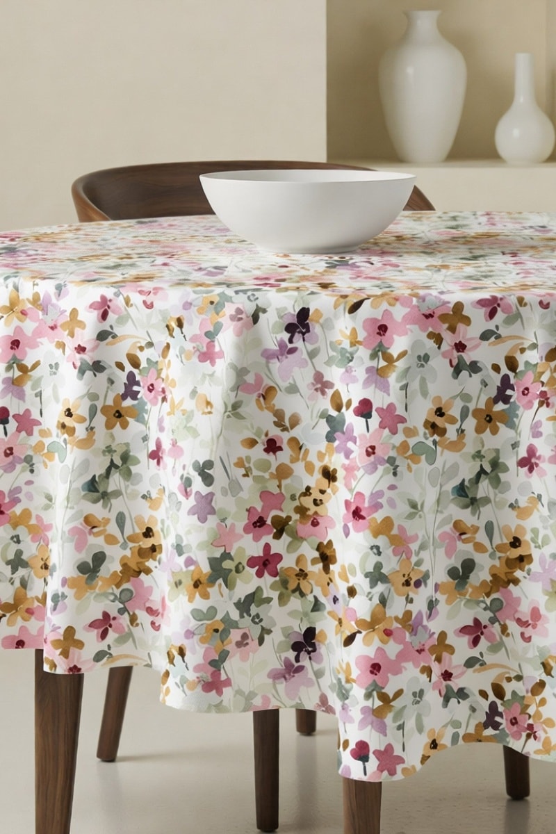 Tovaglia rotonda antimacchia - Bianco e rosa