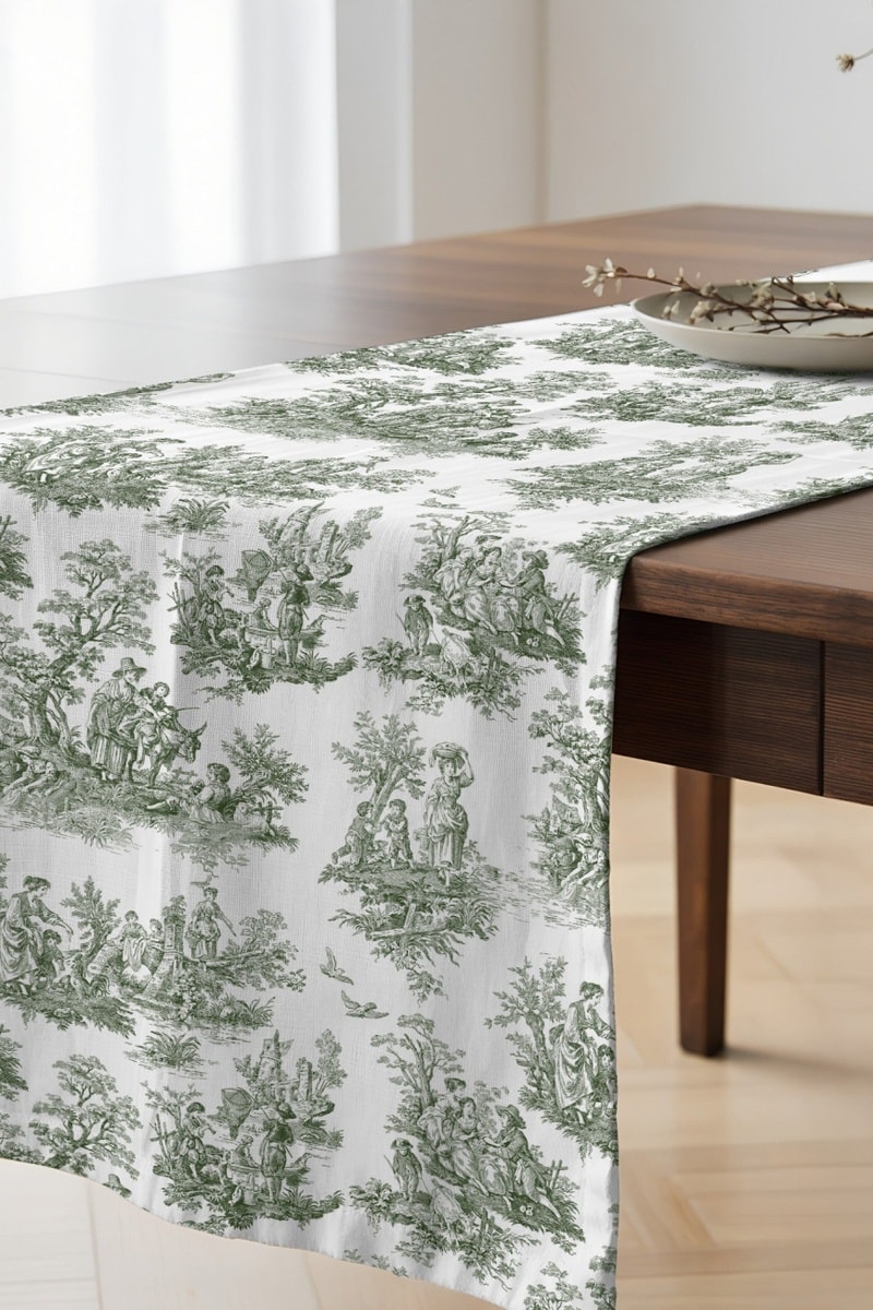 Runner in cotone bio - Bianco e verde - 50 x 150 cm