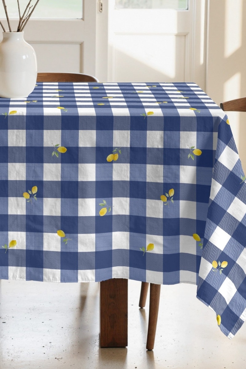 Tovaglia quadrata antimacchia - Celeste e bianco - 180 x 180 cm