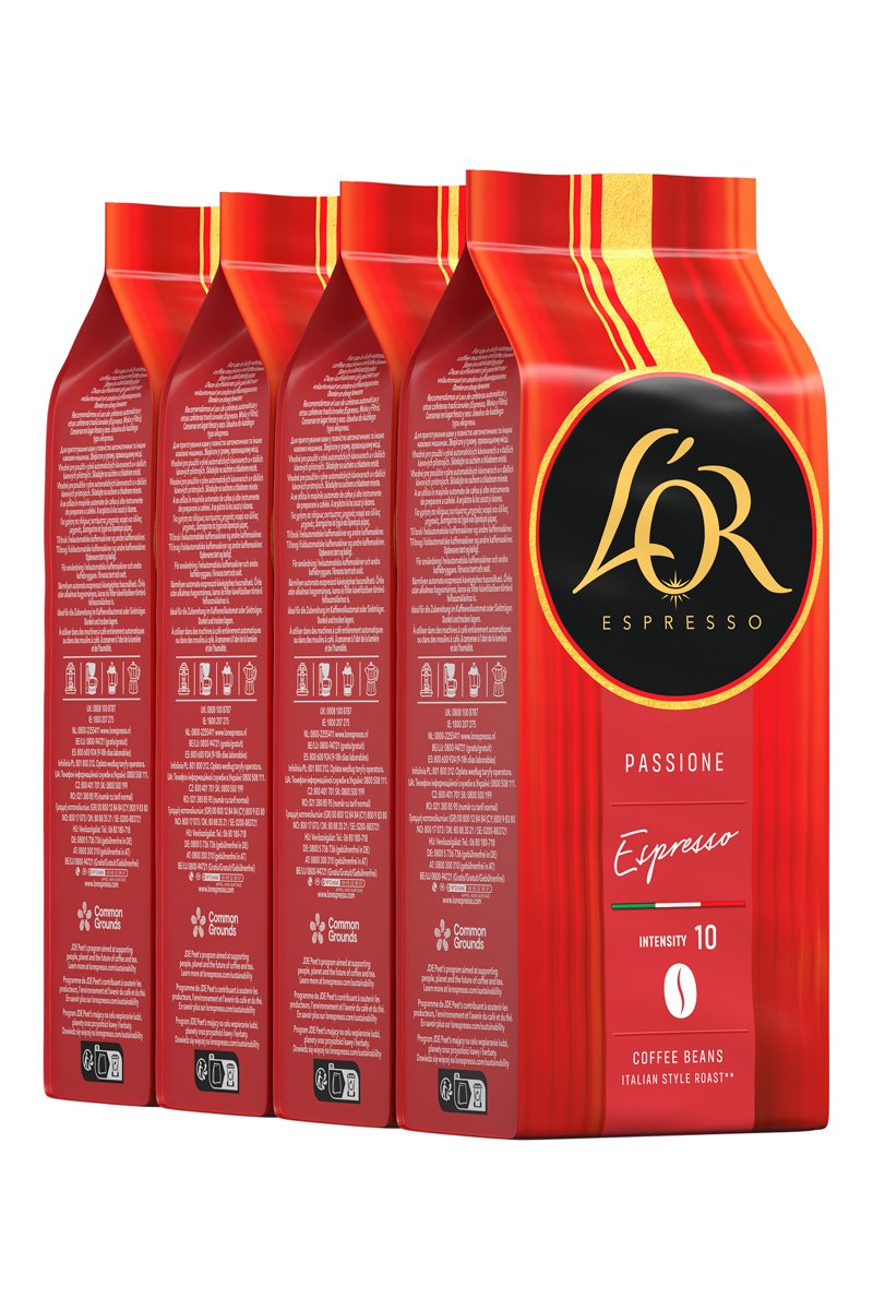 Lotto 4 x 450 g - Caffè in grani L'OR Espresso - Passione Espresso - Intensità 10