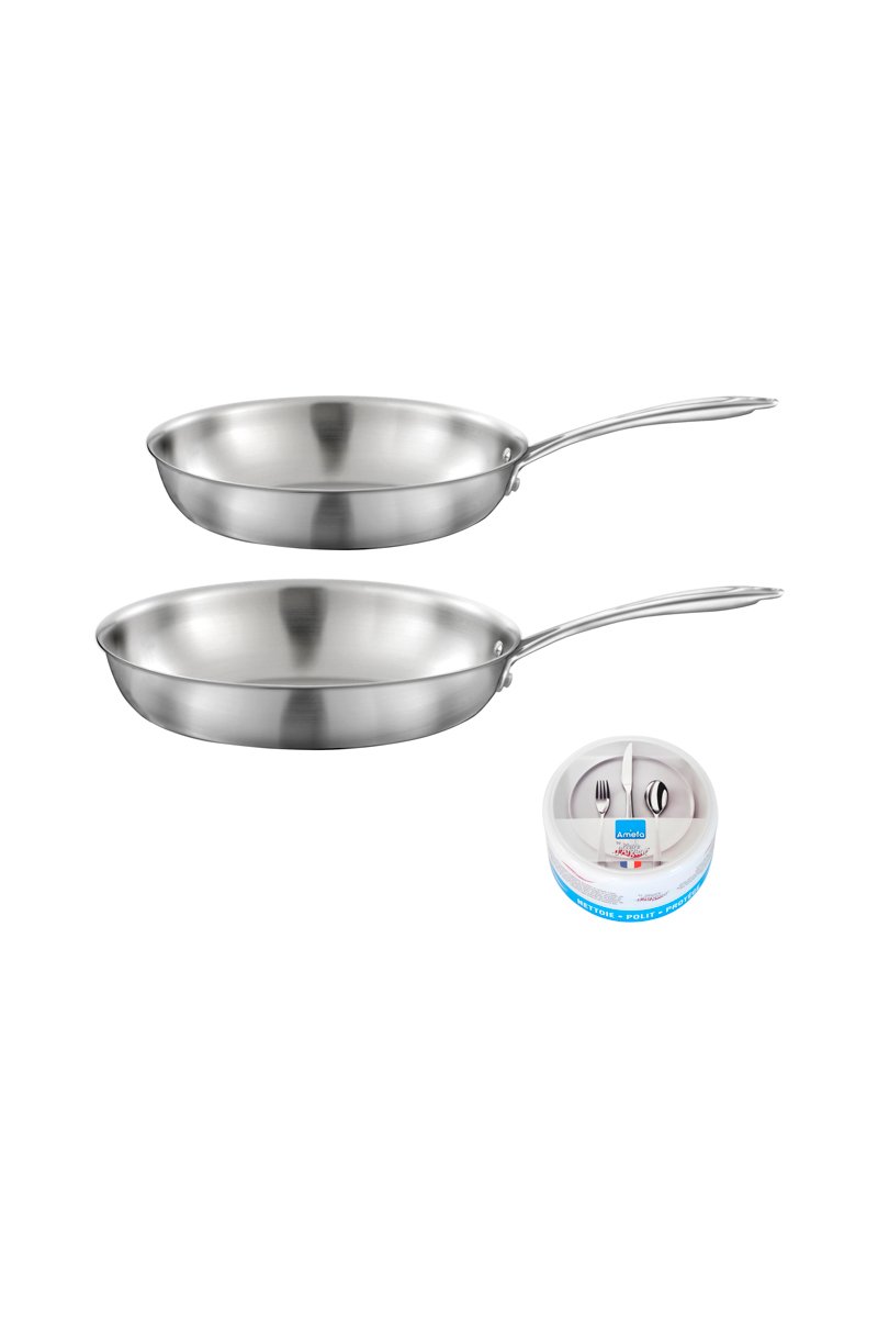 2 padelle Gourmet in acciaio inossidabile e 1 pierre d'argent Limone - 24/28 cm e 300 g