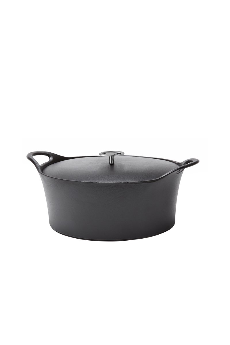 Cocotte in ghisa di ferro smaltata con coperchio.