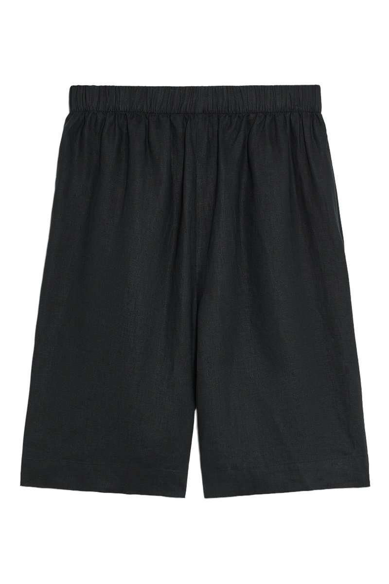 Bermuda in lino a vita alta - Nero