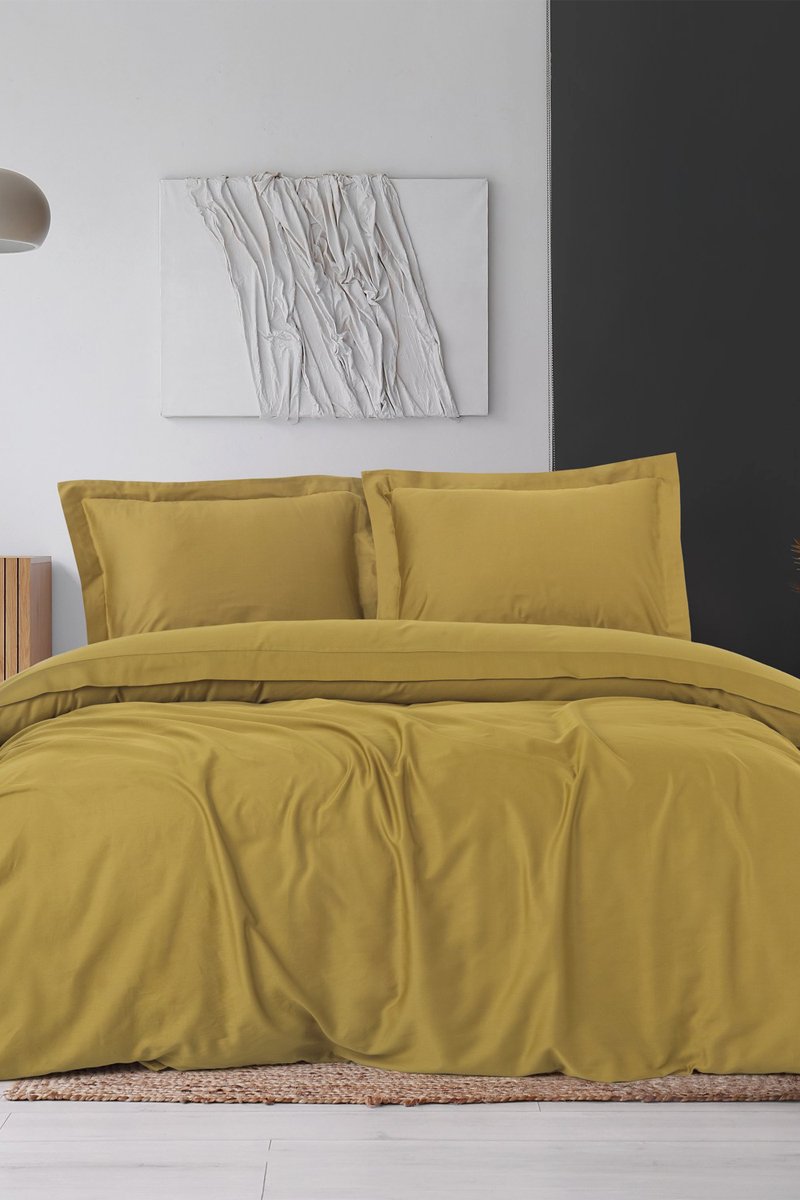 Parure copripiumino in raso di cotone 83 fili/cm² - Senape