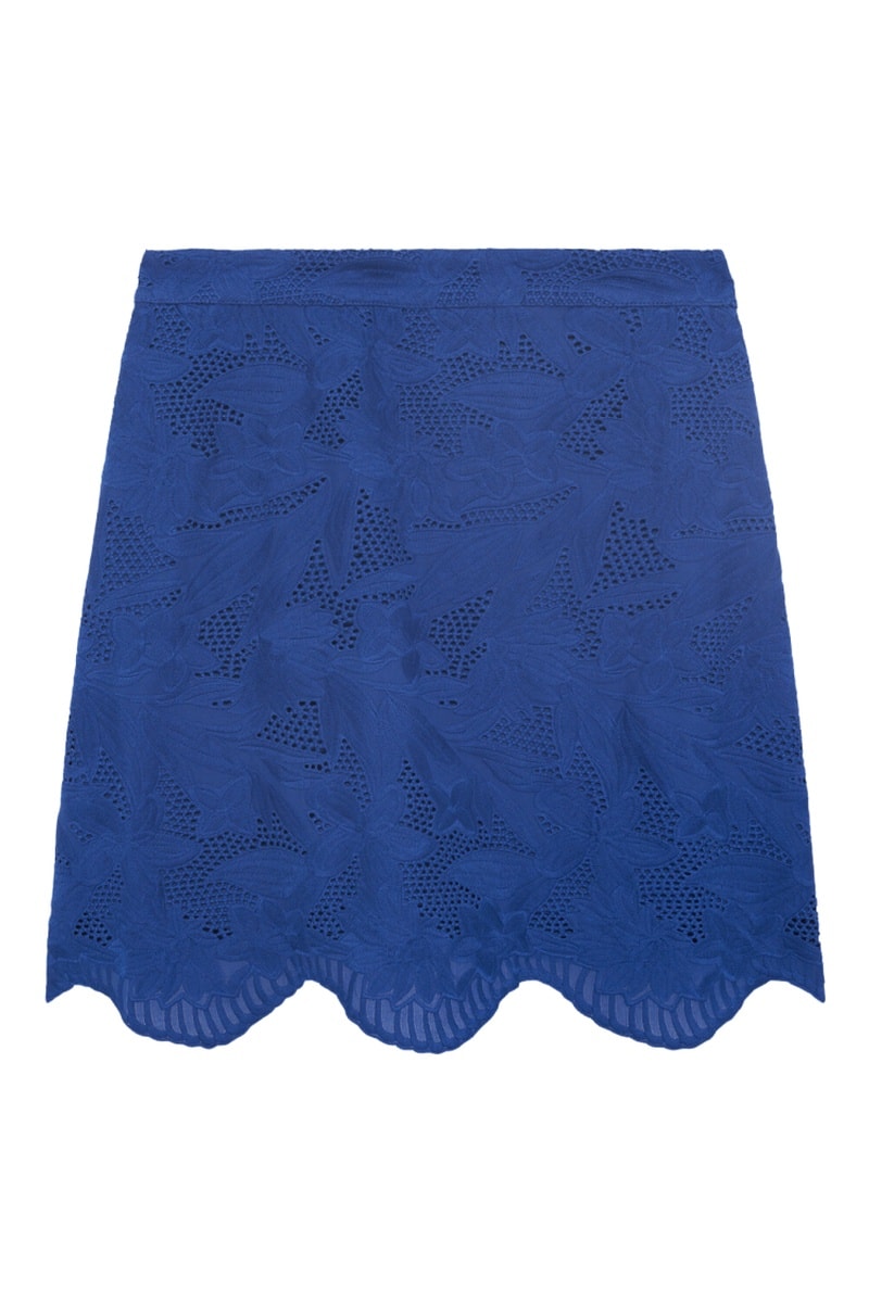 Gonna taglio dritto in pizzo Calvie - Blu elettrico