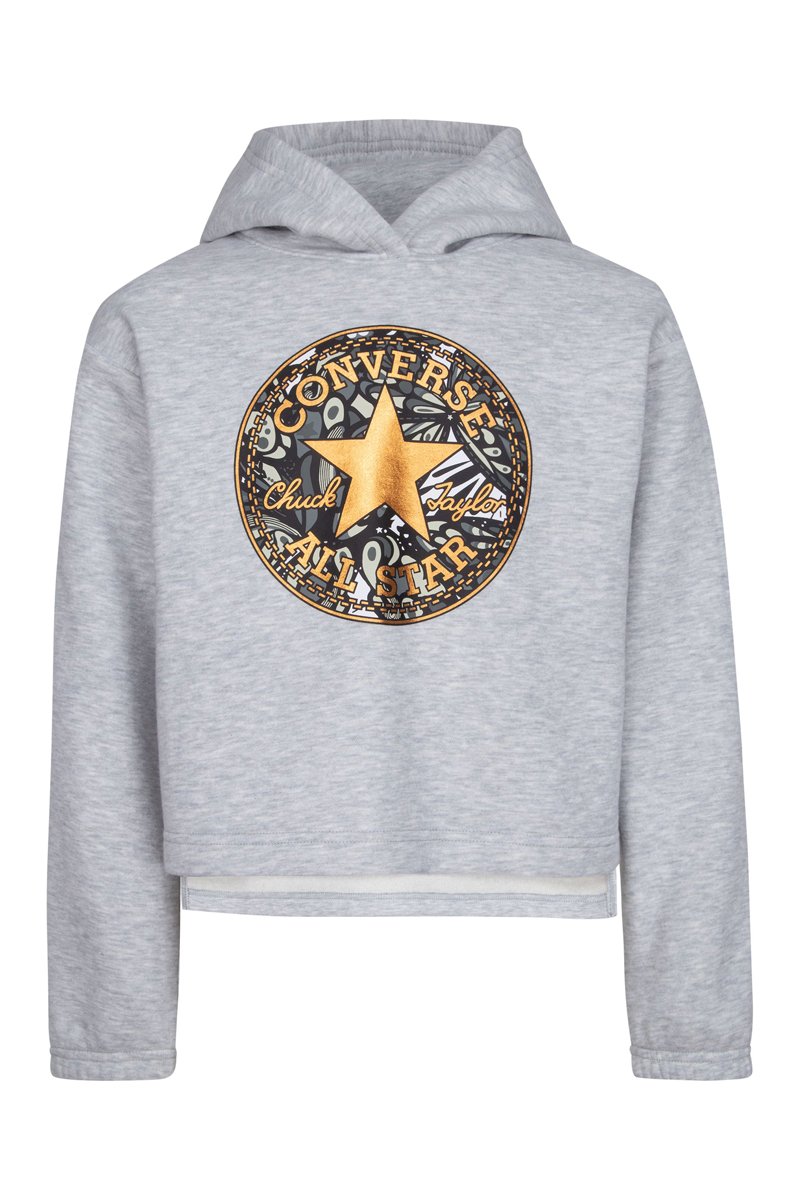 Scritta effetto metallizzato e motivi fantasia sul davanti.