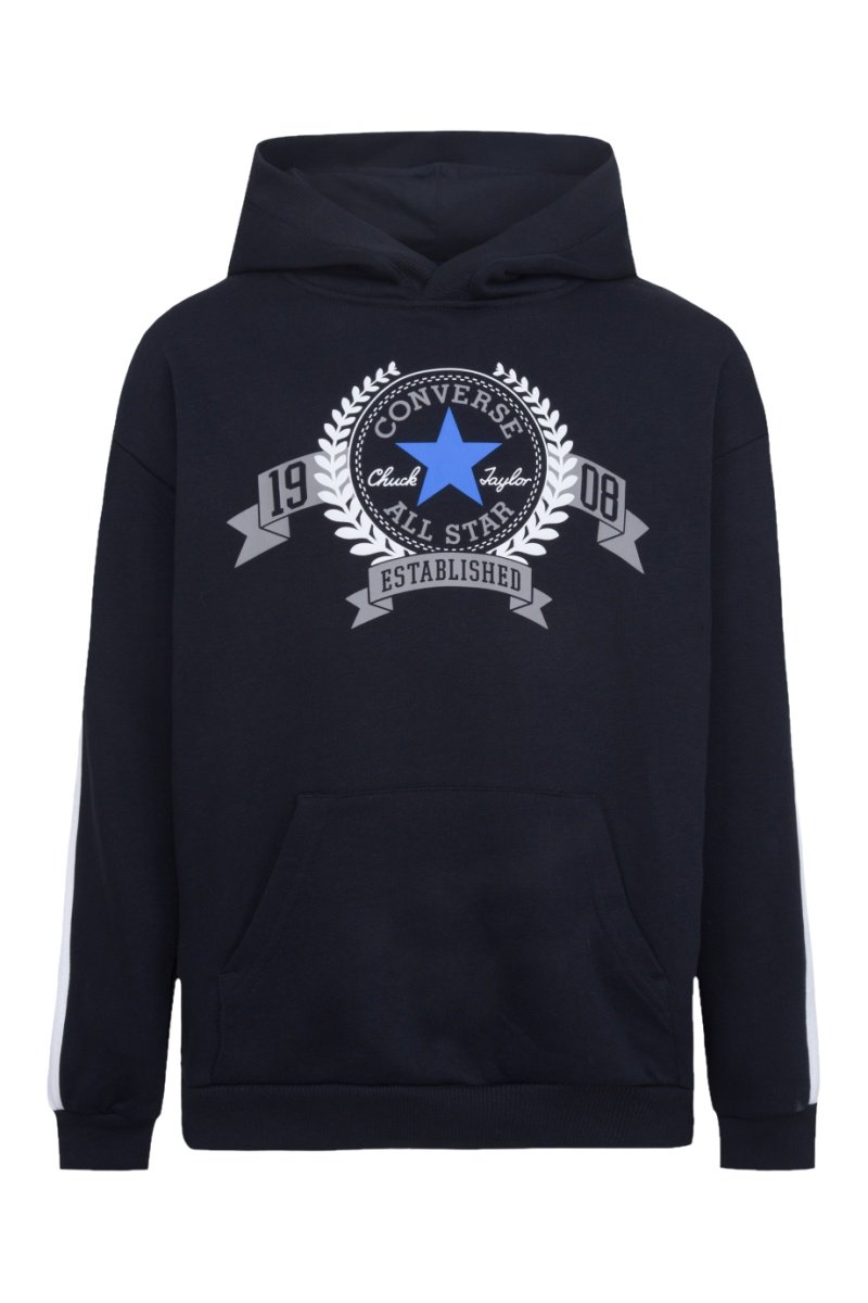 Felpa con cappuccio in cotone bio - Bianco, nero e blu