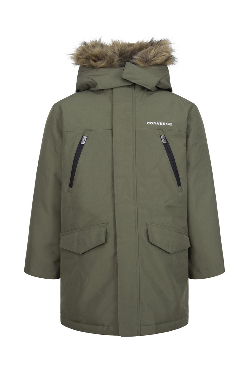 Cappuccio amovibile con finta pelliccia e a strappo.