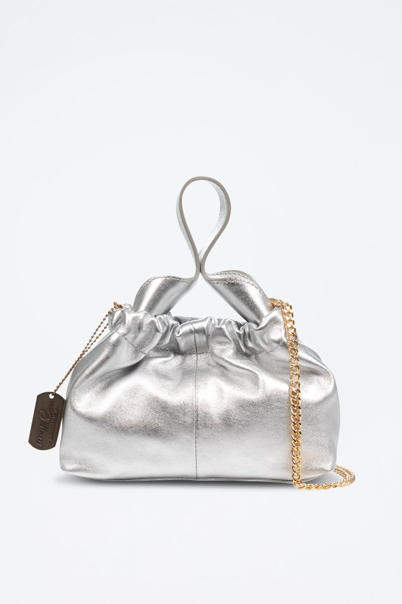 Borsa a mano in pelle di capra Arlino - Argentato