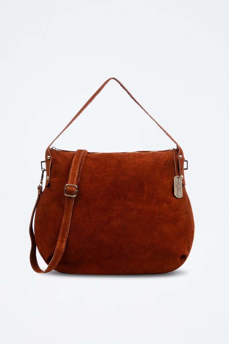 Borsa a mano in pelle scamosciata - Marrone