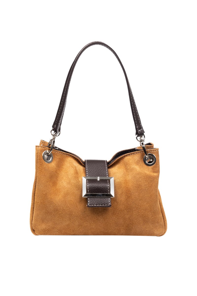 Borsa a spalla in pelle scamosciata - Cammello e marrone