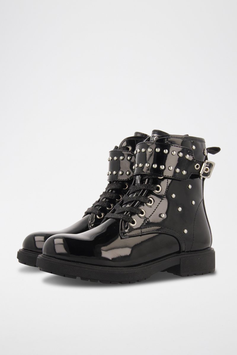 Chiusura con lacci, cerniera e chiusura automatica sul lato.