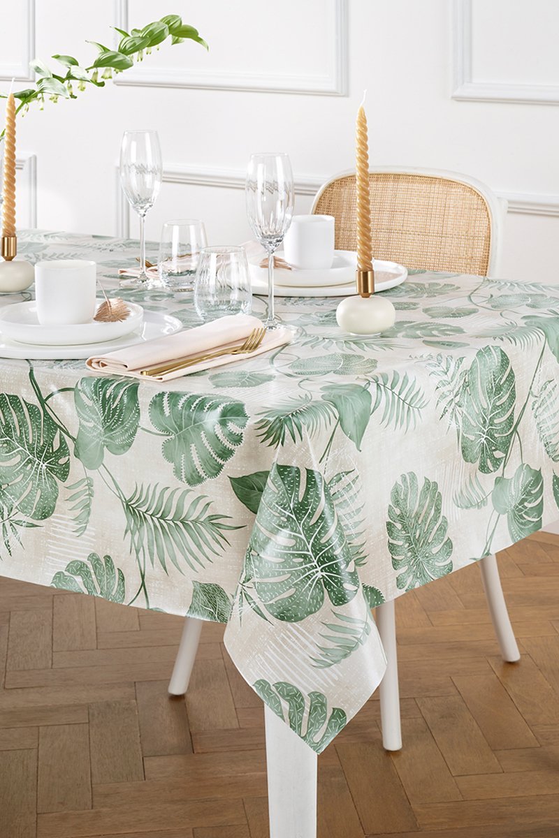 Tovaglia antimacchia Foresta - Verde e bianco