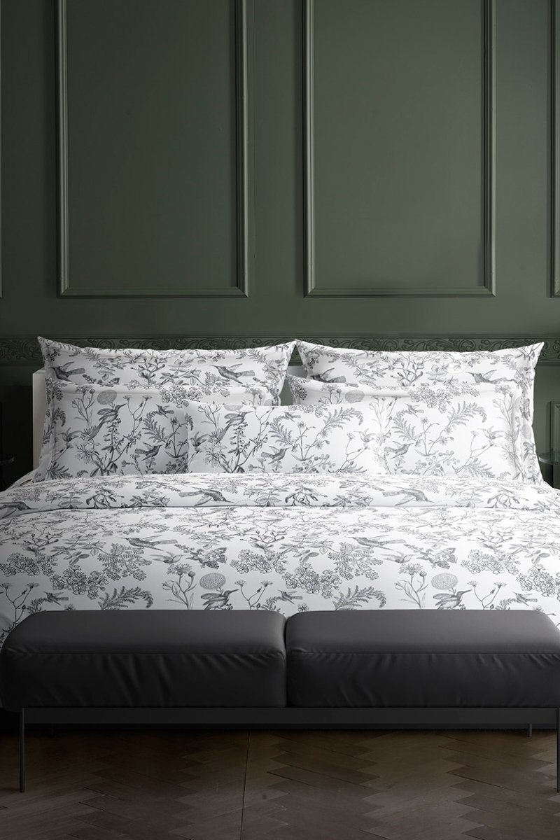 Parure copripiumino in raso di cotone 80 fili/cm² Colibri floral - Nero e grigio