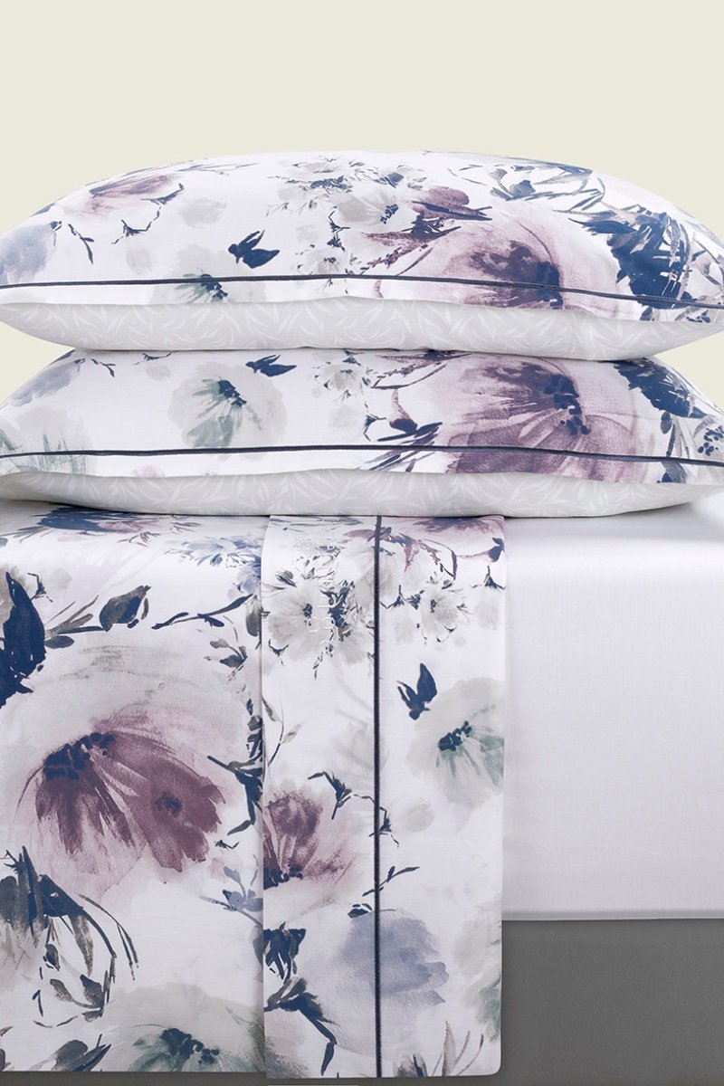 Parure lenzuola in raso di cotone 80 fili/cm²Erodium - Bianco e navy