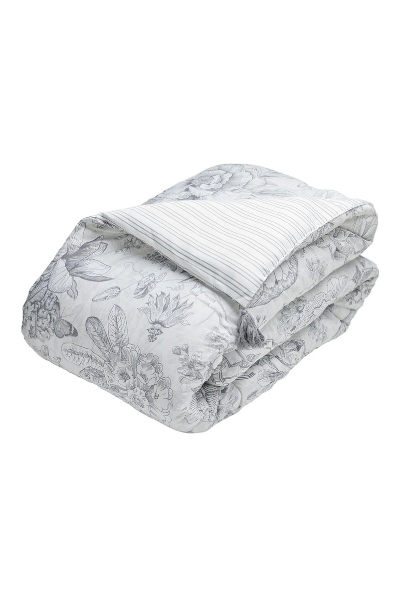 Trapunta in raso di cotone 80 fili/cm² Fleur esquissées - Bianco e grigio