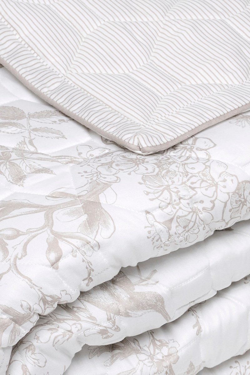 Copriletto in raso di cotone 80 fili/cm² Colibri floral - Bianco e taupe