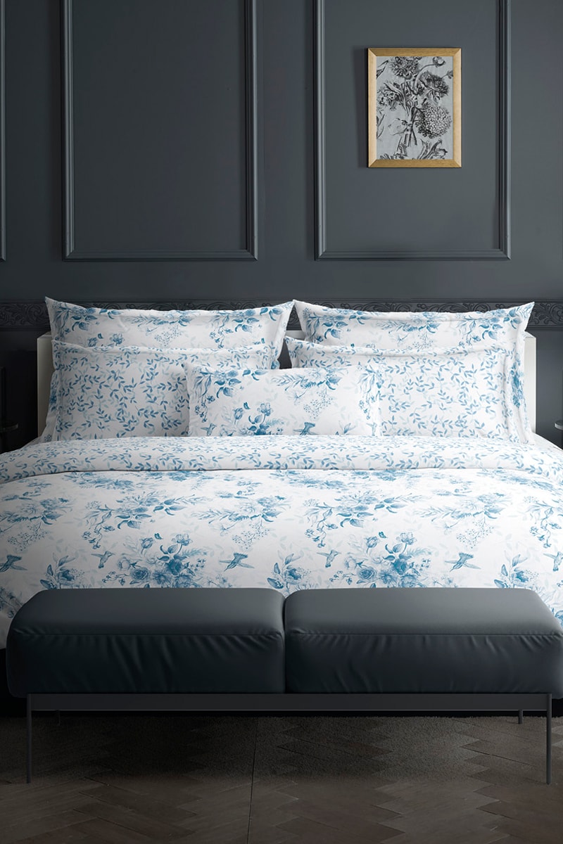 Parure copripiumino in raso di cotone 80 fili/cm² Bleu Floral - Bianco