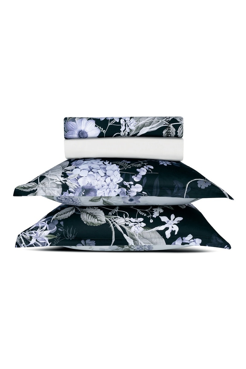 Parure lenzuola in raso di cotone 80 fili/cm² Hortensia - Blu scuro