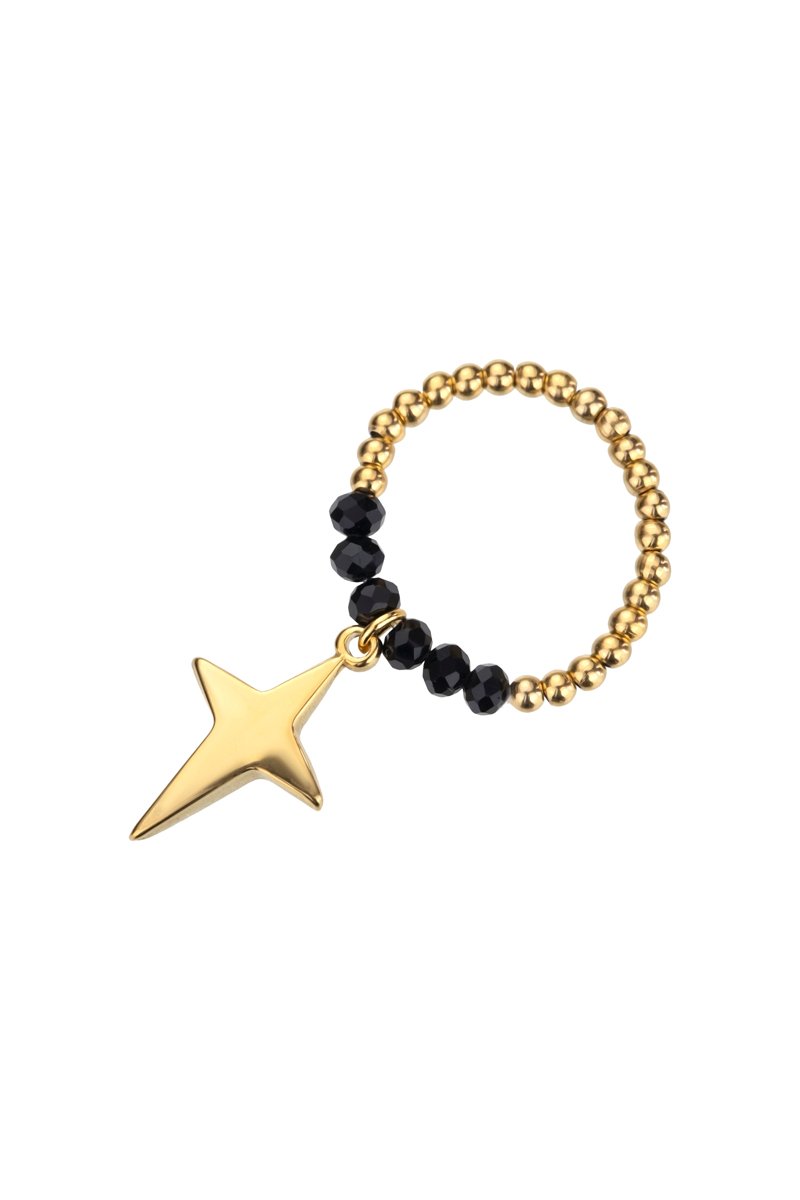 Anello placcato oro giallo con perle di vetro.