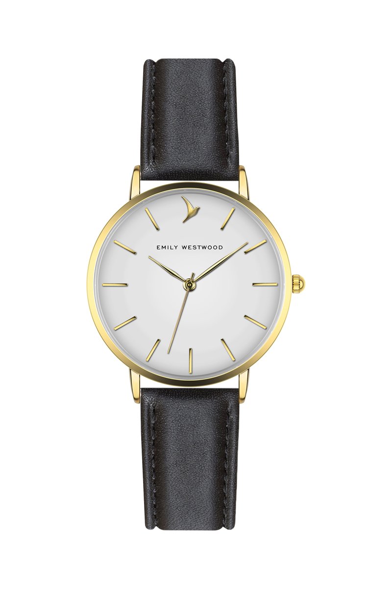 Orologio al quarzo in pelle - Nero e bianco - Emily Westwood