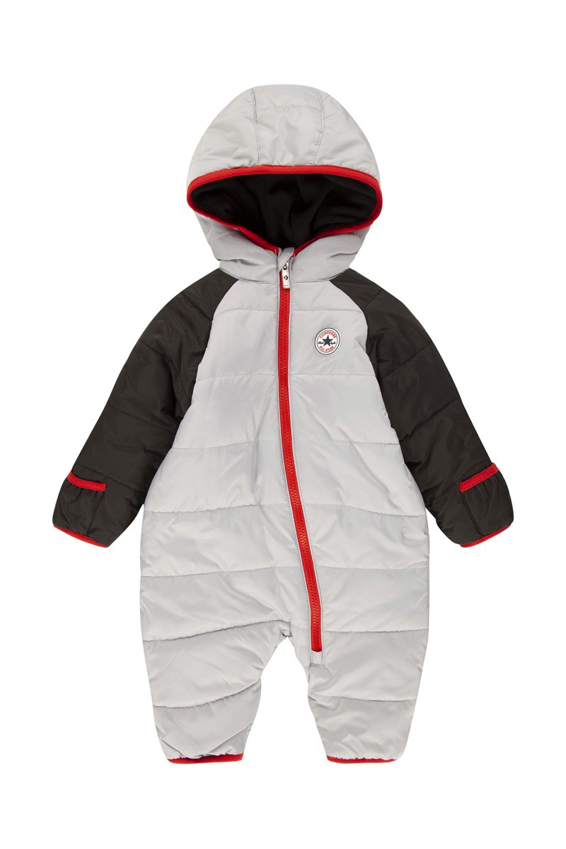 Tutina imbottita con cappuccio - Nero, rosso e grigio