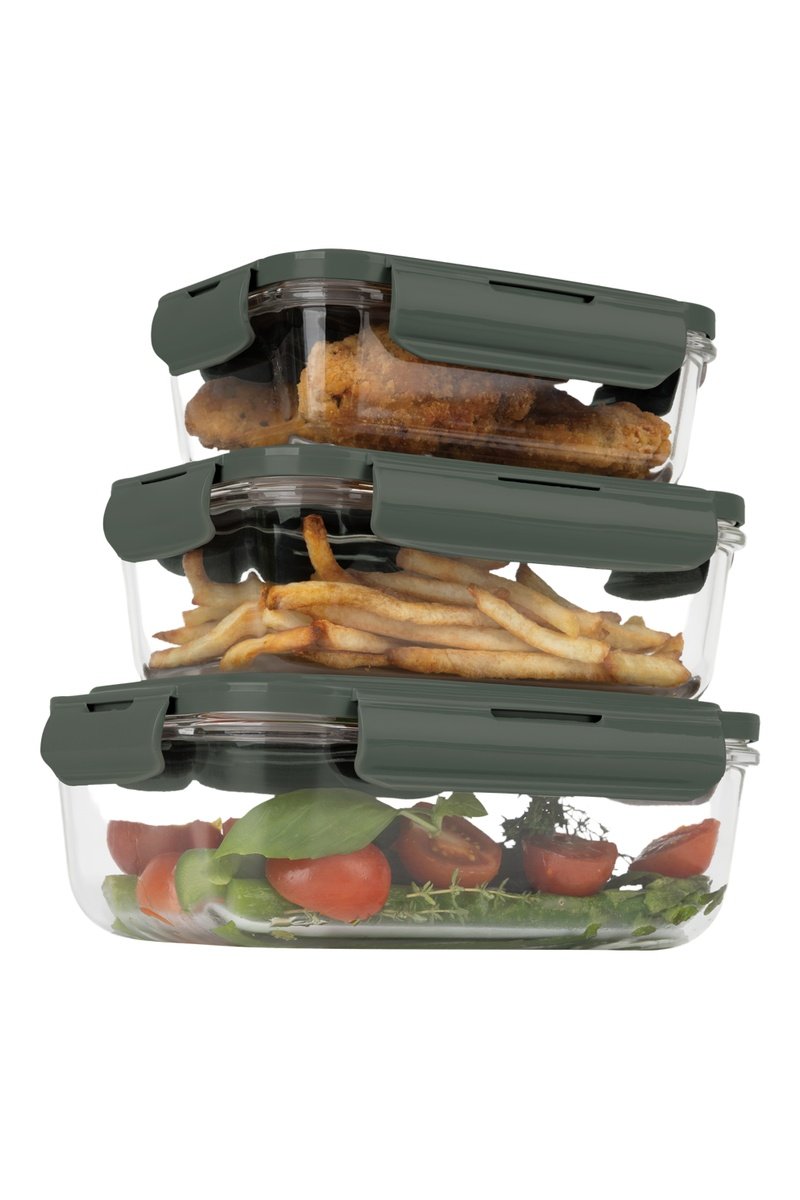 3 contenitori salvafreschezza in vetro borosilicato con coperchi in plastica senza BPA Matte Green - 57-118 cl
