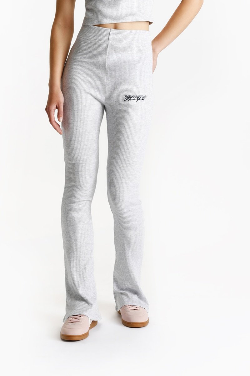 Pantaloni flare in maglia a costine.