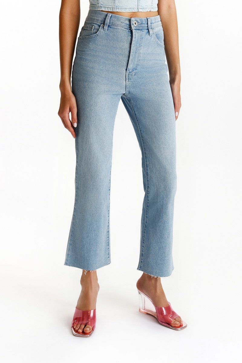 Jeans flare a vita alta - Celeste