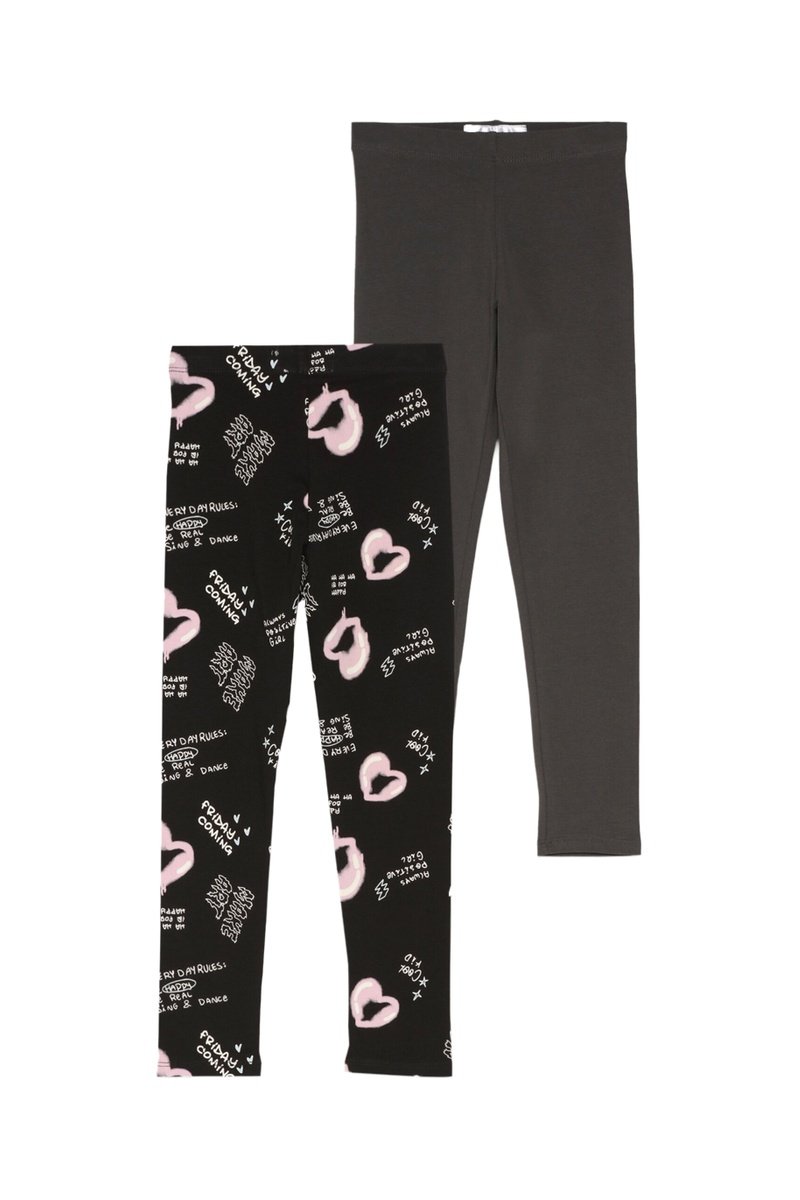 2 leggings di cui 1 con scritta e motivi fantasia.