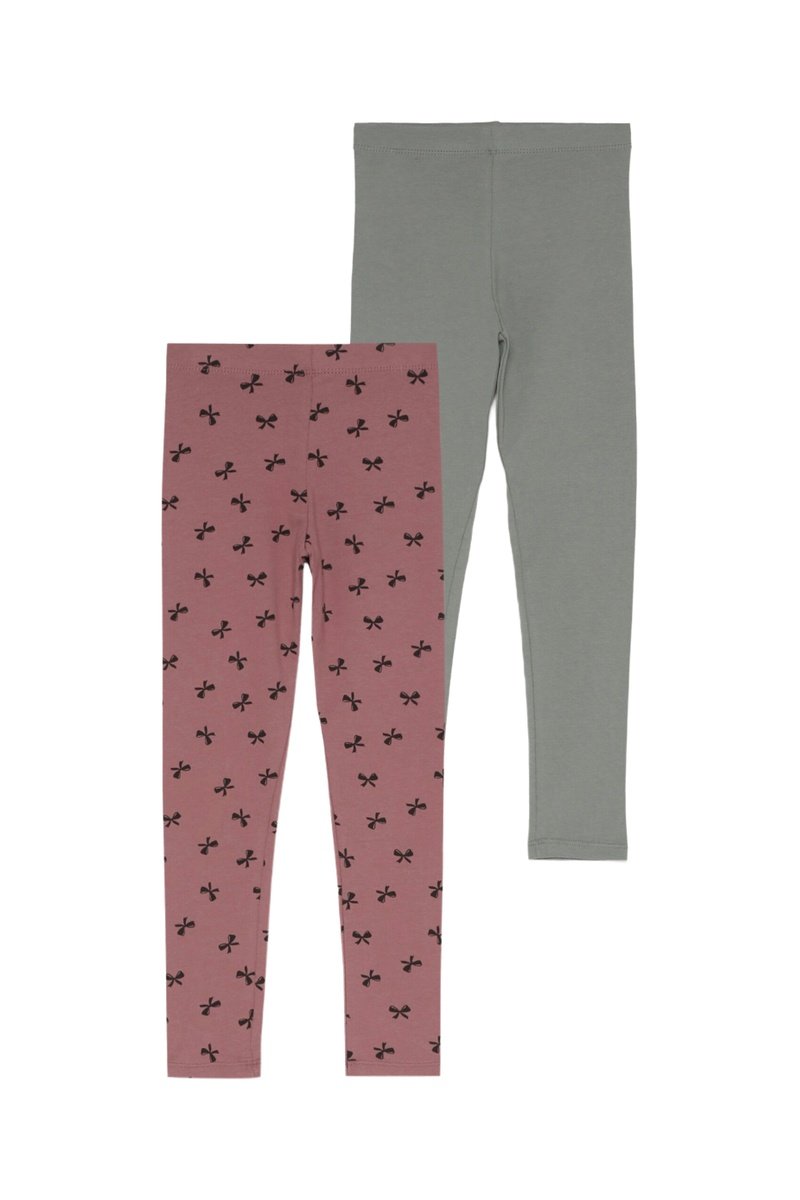2 leggings di cui 1 con motivi fiocchi.