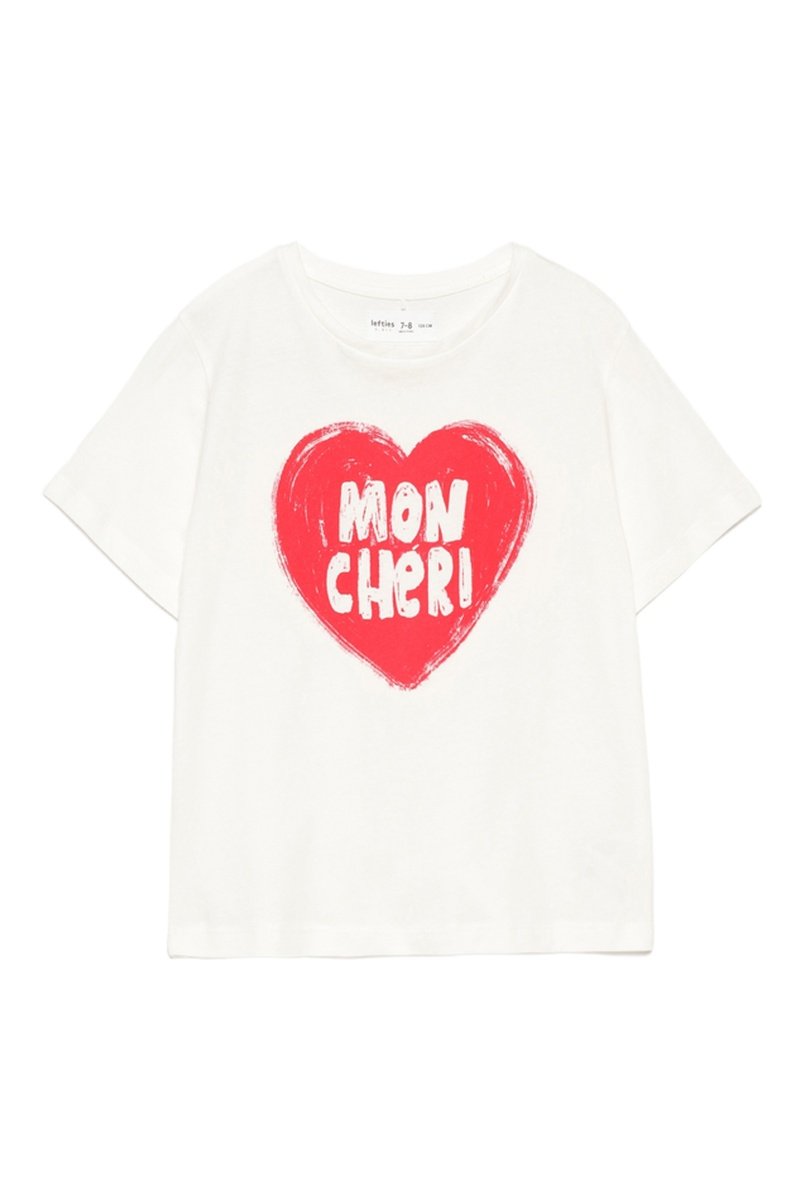 Scritta e motivo cuore sul davanti.