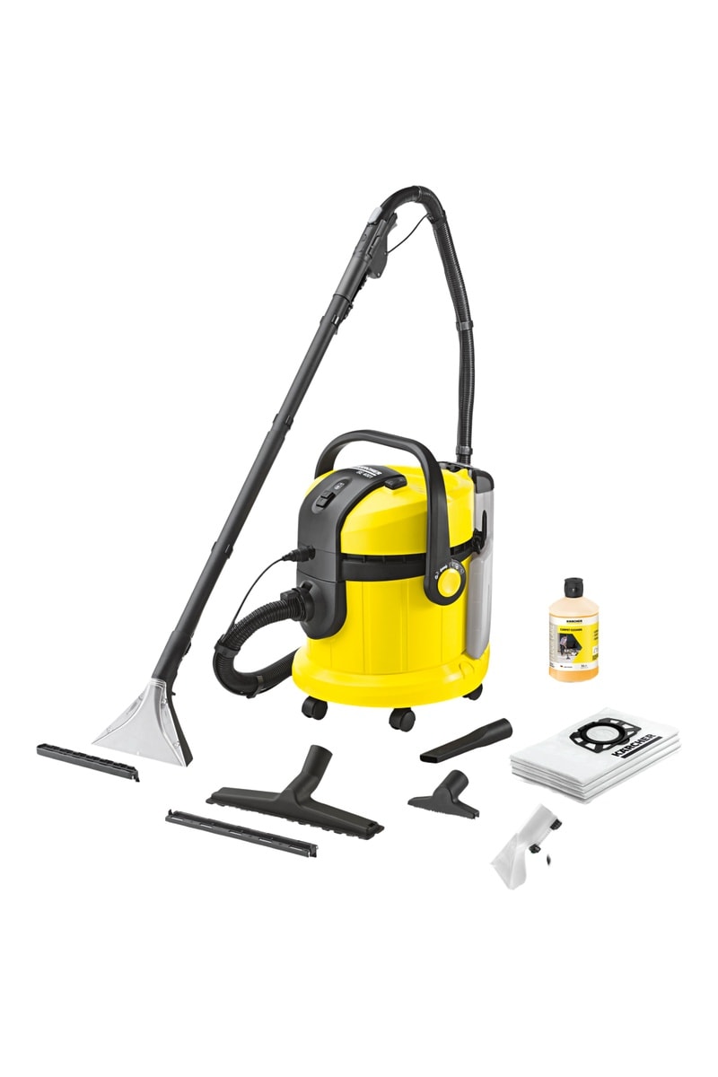 Questo lavatappeti è molto semplice da usare: basta riempire il serbatoio amovibile da 4 litri con acqua pulita e detergente per tappeti e cuscini, quindi premere il pulsante. L'acqua viene quindi spruzzata sulla superficie tessile e immediatamente estratta insieme allo sporco disciolto. Il pulitore a iniezione non è adatto solo alla pulizia di superfici tessili: può essere utilizzato anche come aspiratore di polvere o di acqua e polvere. A questo scopo sono disponibili diversi ugelli aggiuntivi. L'SE 4 Plus è perfetto per rimuovere lo sporco sia umido che secco dalle superfici. L'ugello per la pulizia dei tessuti è ideale per la pulizia profonda di divani, poltrone e sedili dell'auto. Dopo la pulizia, il cavo e gli accessori possono essere riposti direttamente sull'apparecchio.