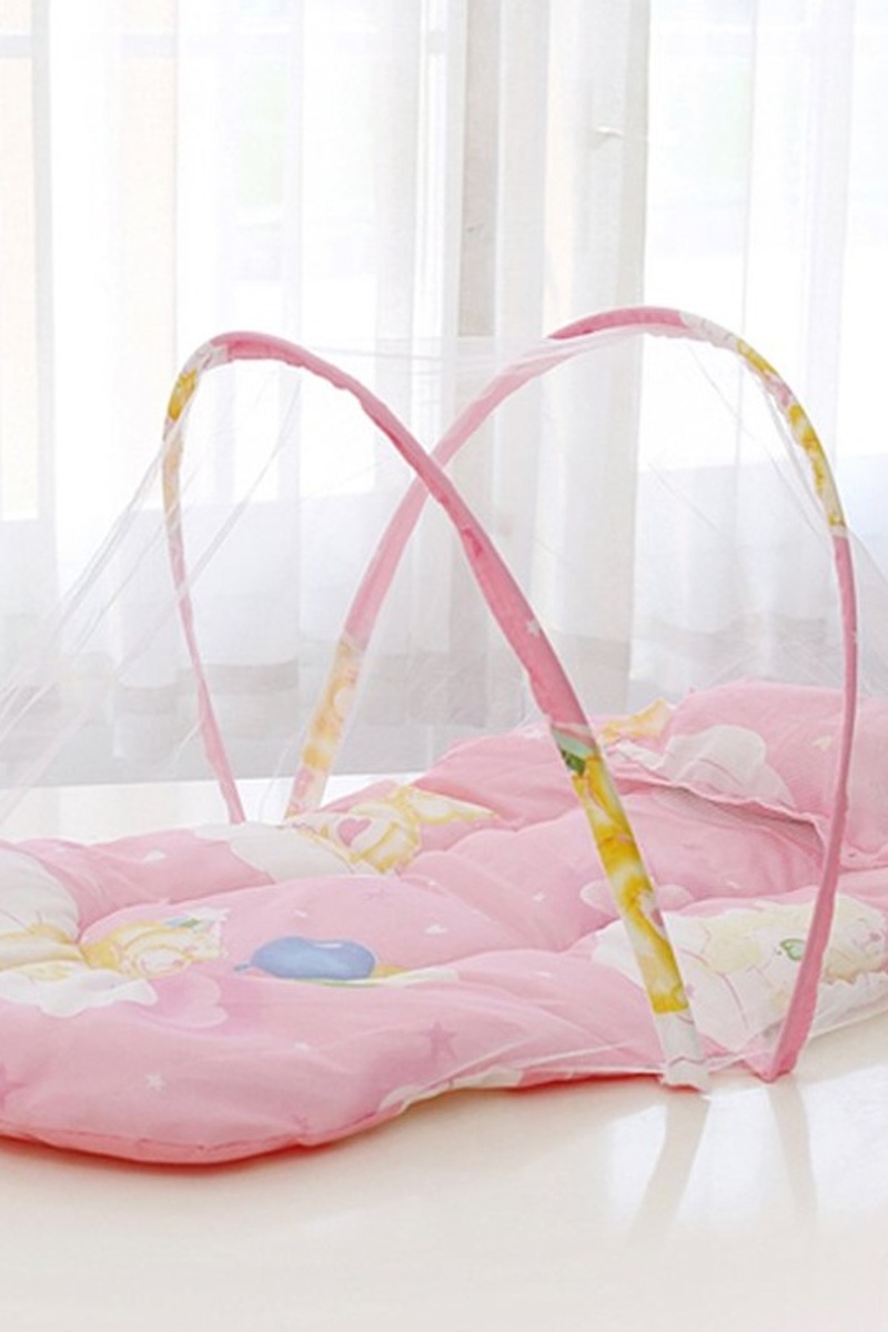 Tenda a zanzariera pieghevole e portatile per bambini con materasso e cuscino.