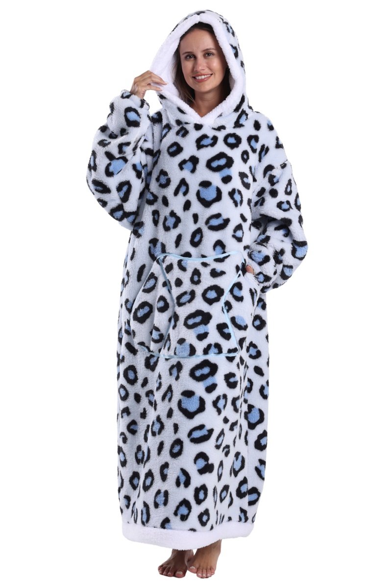 Maglia plaid lunga con cappuccio - Leopardato blu