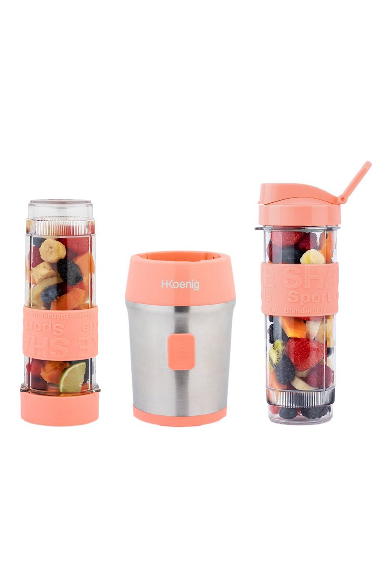4 lame in acciaio inossidabile. 2 borracce da 570 ml con coperchio da viaggio e bordo in silicone incluse.