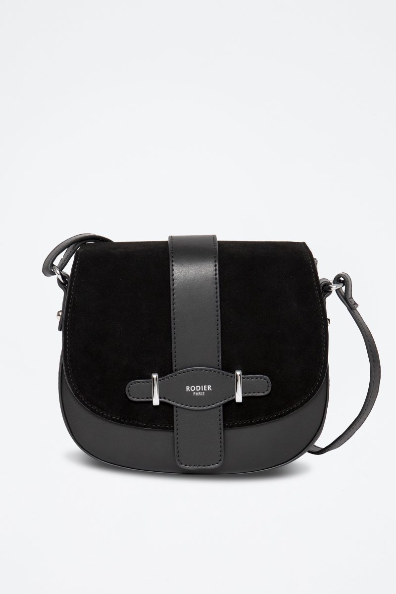 Borsa a tracolla in crosta di pelle Cinq - Nero