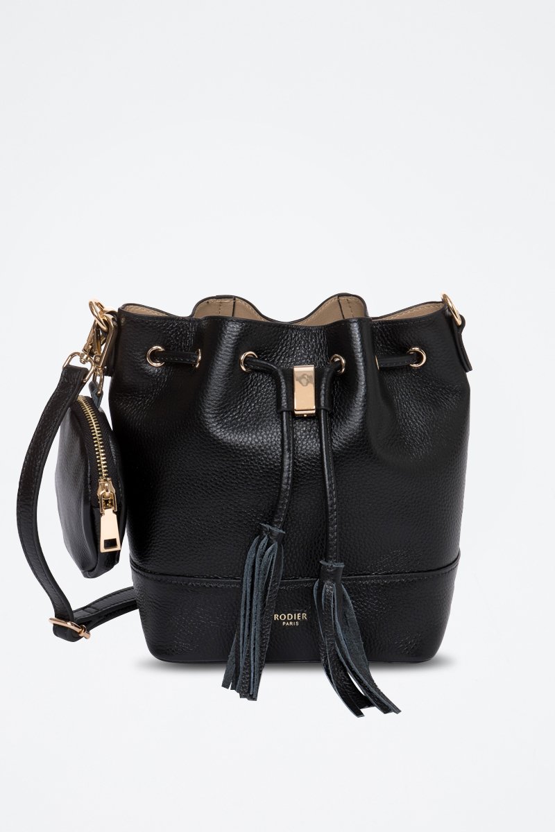 Borsa a secchiello in crosta di pelle Rio - Nero