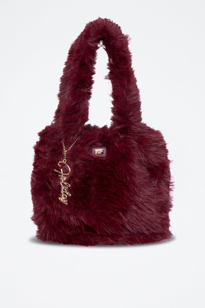 Borsa a mano in pelliccia sintetica.