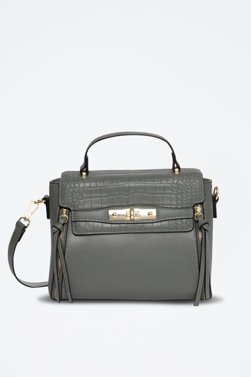 Borsa a tracolla in pelle Corner - Grigio e verde