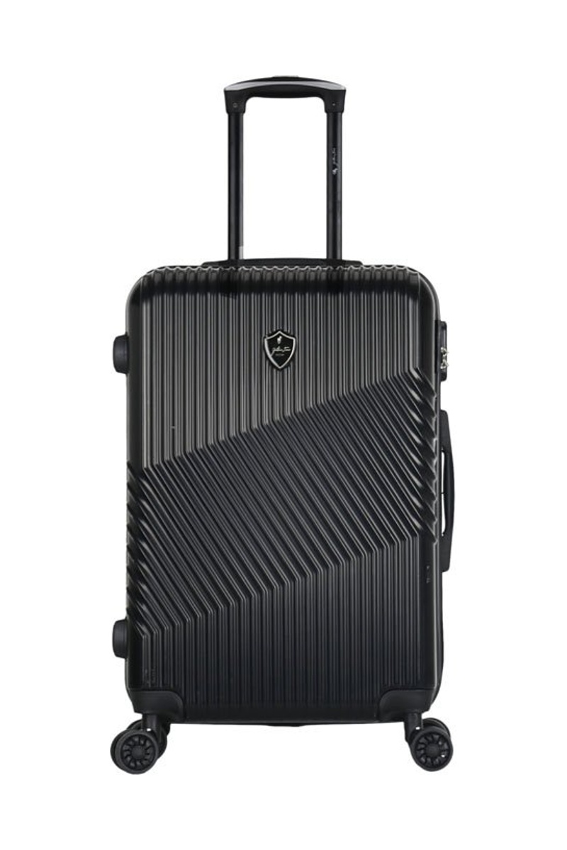 La valigia è protetta da una pellicola di plastica da rimuovere.