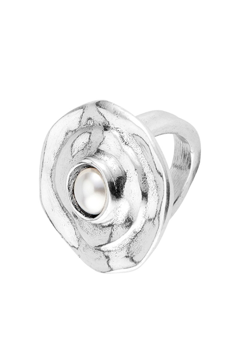 Anello placcato argento con una perla di imitazione.