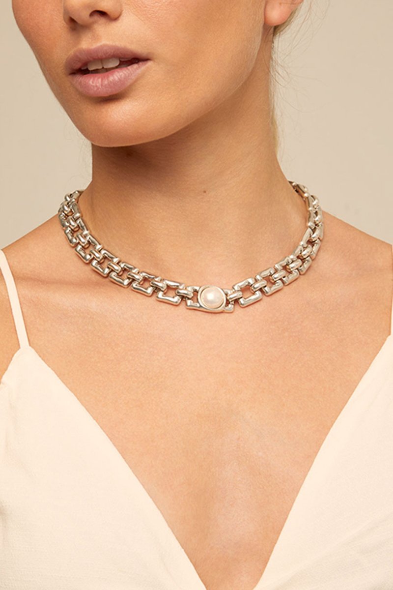 Collana placcato argento con perla di imitazione.