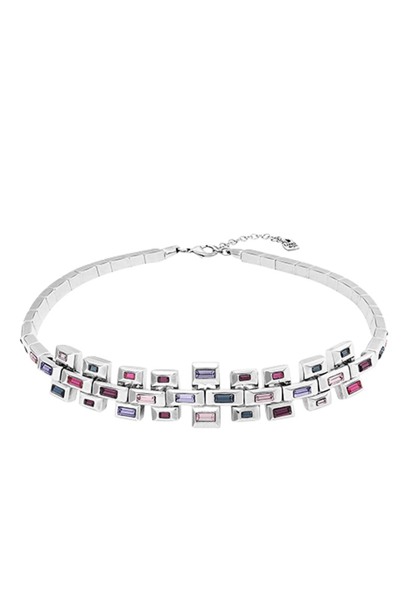 Collana plastron placcato argento con cristalli.